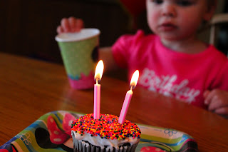 On to her "birthday cake"! Emma had a Minnie Mouse themed birthday, & much to all of our surprise, she kept her birthday hat on! I can't take credit for the idea for her cupcakes either. Here's the blog I got it from: Balloon Cupcakes